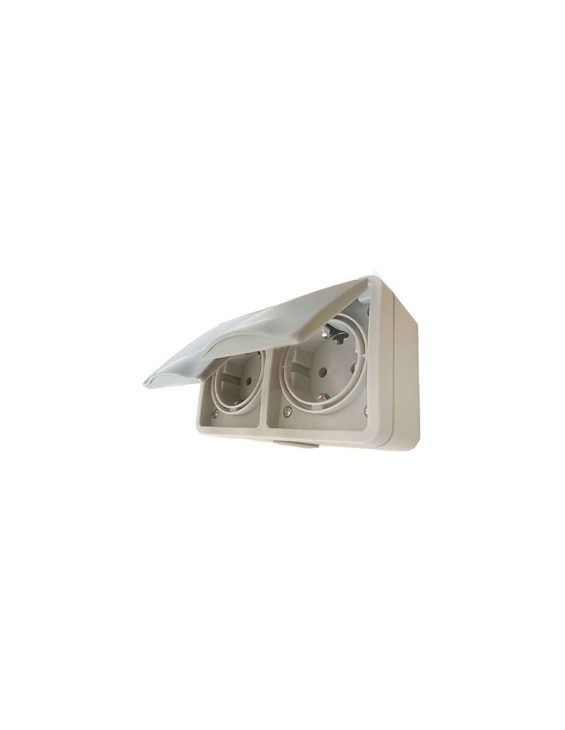 ENCHUFE DOBLE SCHUKO GRIS DE EXTERIOR IP54 CON TAPA EXTERNA [6H2A52GM]