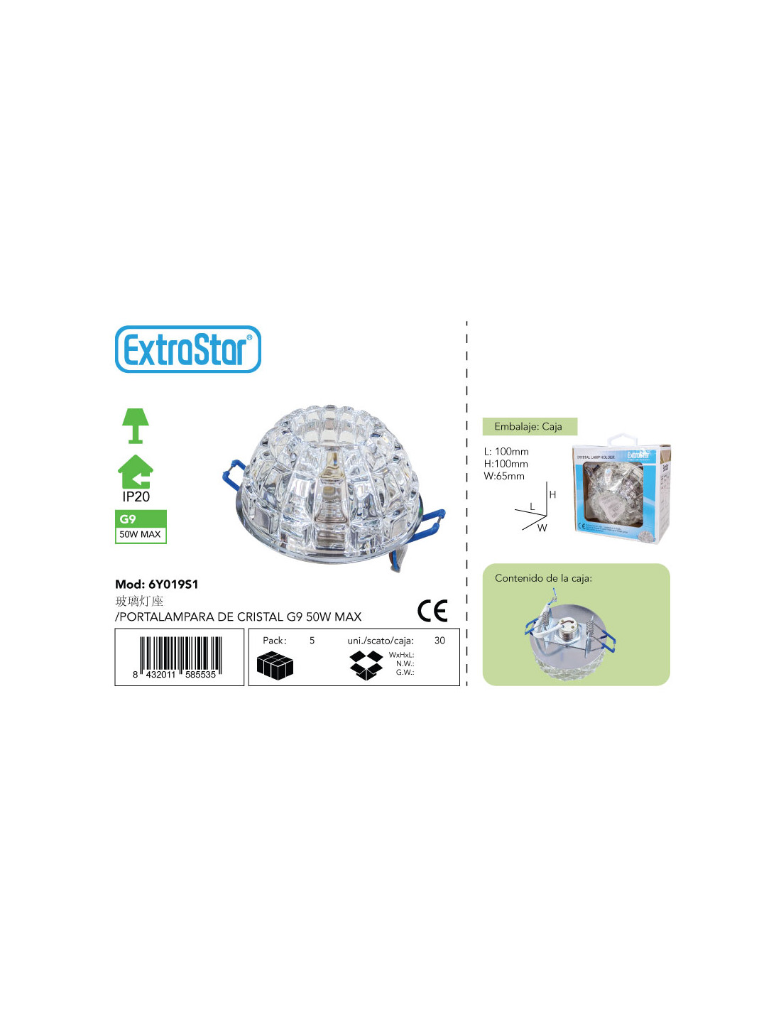PORTALAMPARA DE CRISTAL G9 50W MAX CJ30[6Y019S1]