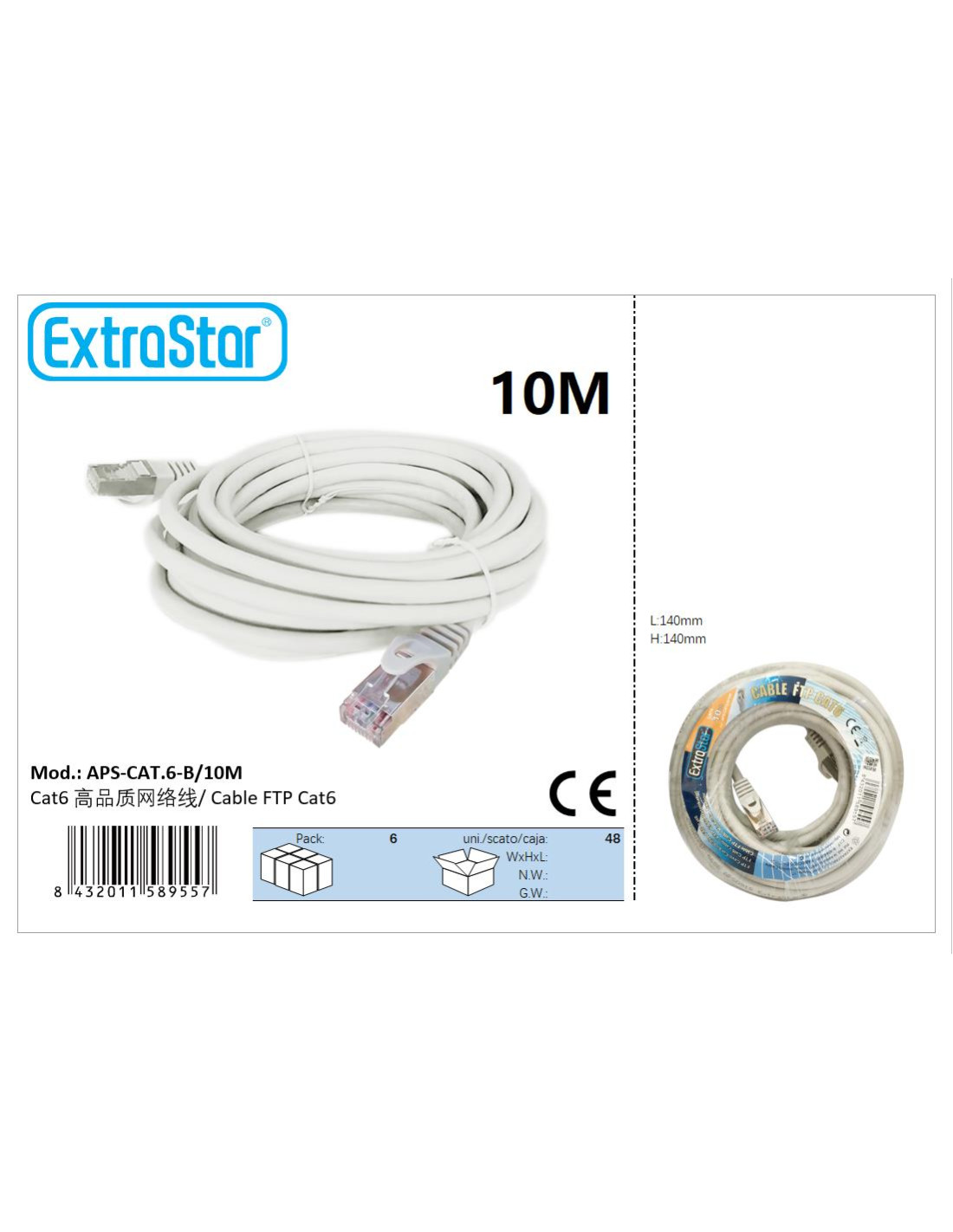 CABLE DE RED FTP CAT6 10 MTS CJ48 [6APSCAT6B10M]